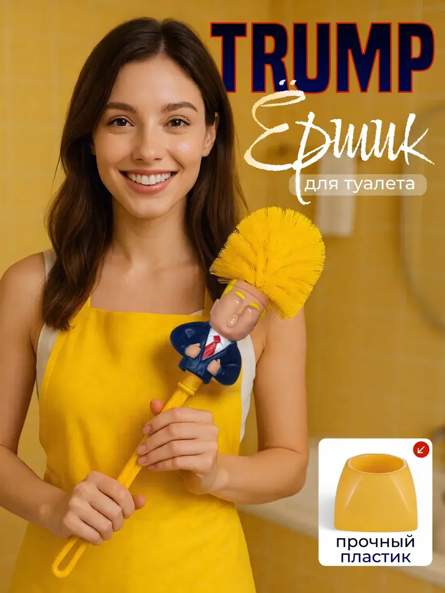 Ершик для туалета в виде фигурки Трампа — это надежный помощник в поддержании чистоты вашего санузла. Его длинная ручка (30 см) позволяет удобно очищать труднодоступные места, а щетинистая щетка эффективно удаляет загрязнения. Ершик поставляется в комплекте с подставкой для удобного хранения. Изготовлен из прочного пластика, что гарантирует его долговечность. Благодаря яркому желтому цвету, он легко найдется в вашем санузле.