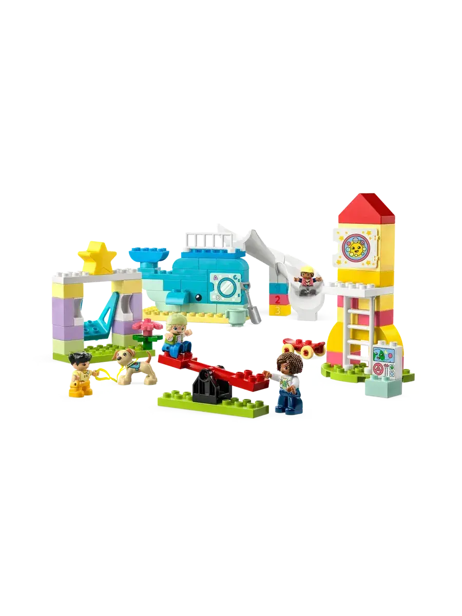Конструктор Duplo 10991 "Игровая площадка мечты" подарит вашему ребенку часы увлекательной игры. Этот яркий и красочный набор из 75 элементов позволит построить собственную игровую площадку с подвижными деталями и забавными фигурками. Конструктор выполнен из прочного пластика и совместим с Lego Duplo, что открывает простор для творчества и фантазии. Сборка конструктора развивает мелкую моторику, воображение и навыки конструирования у детей.