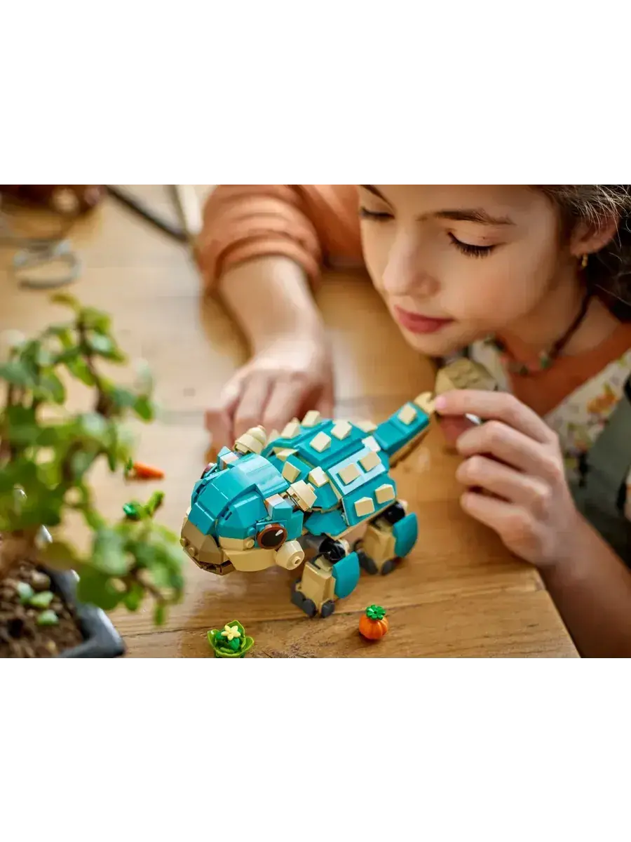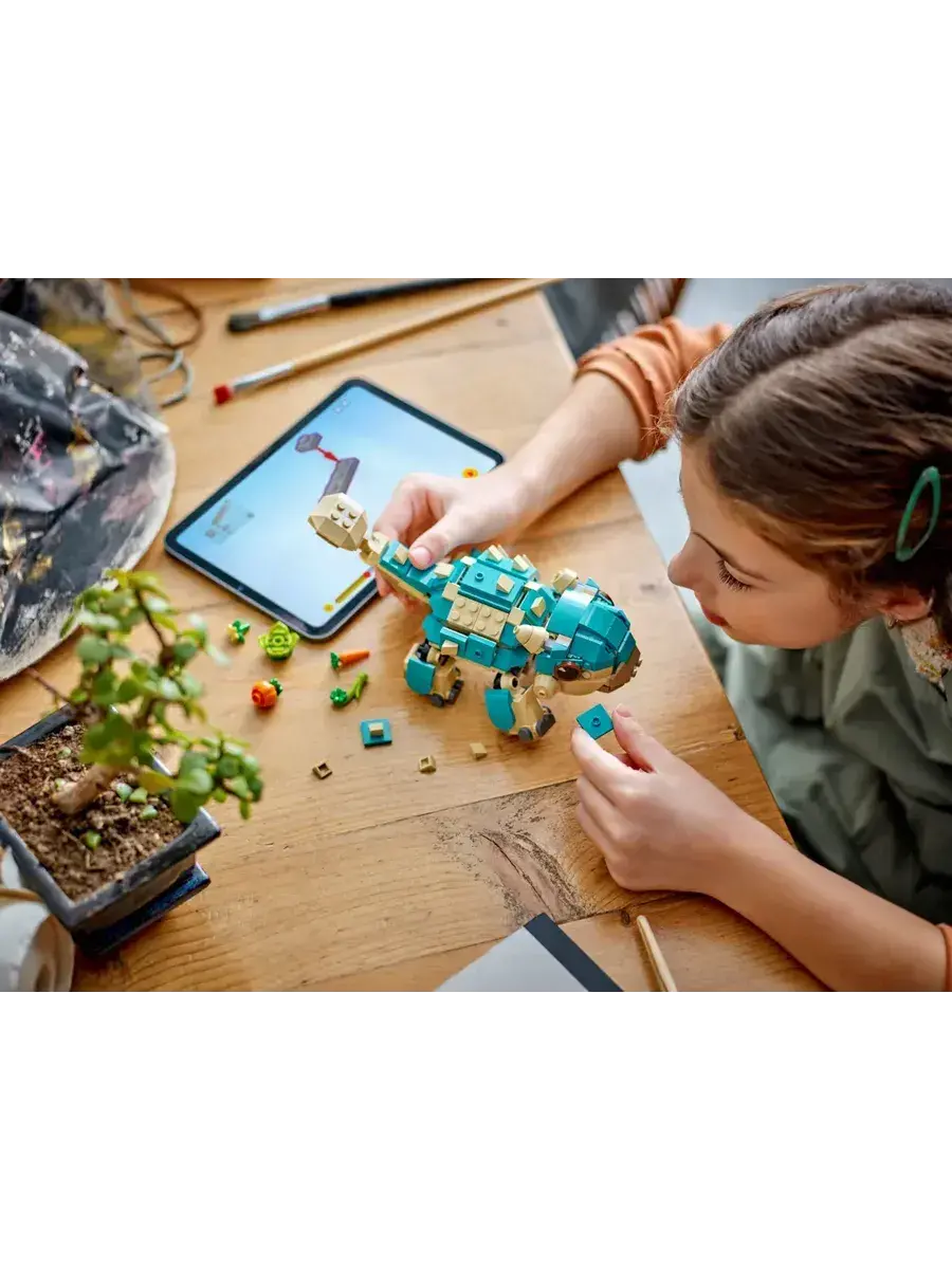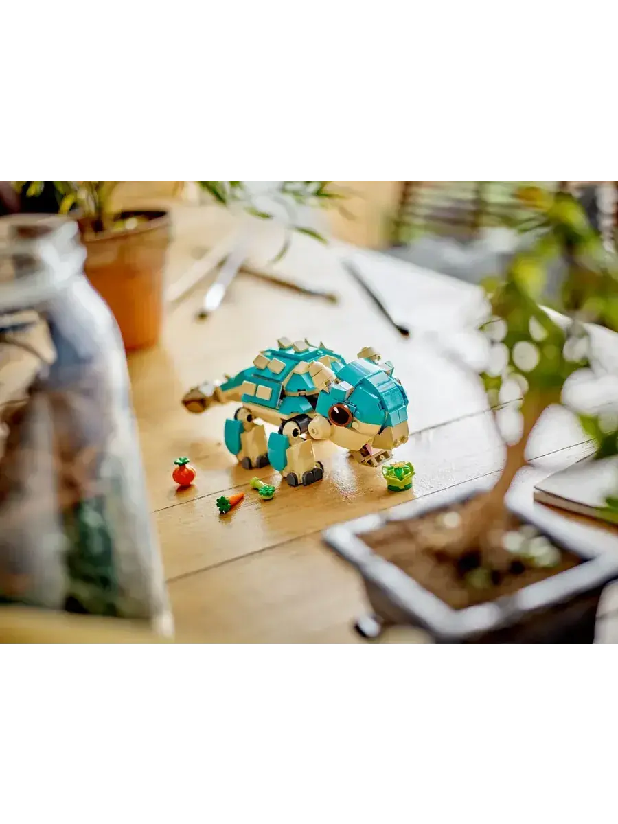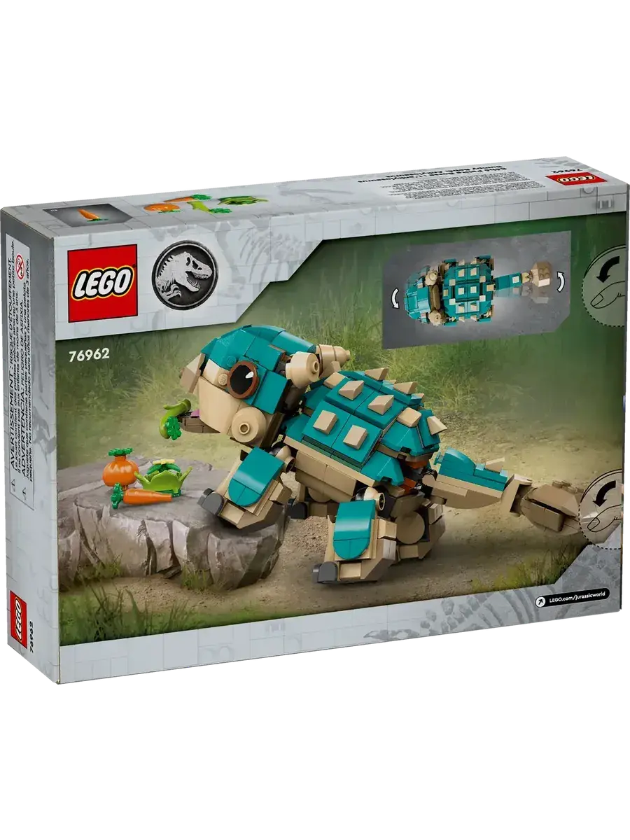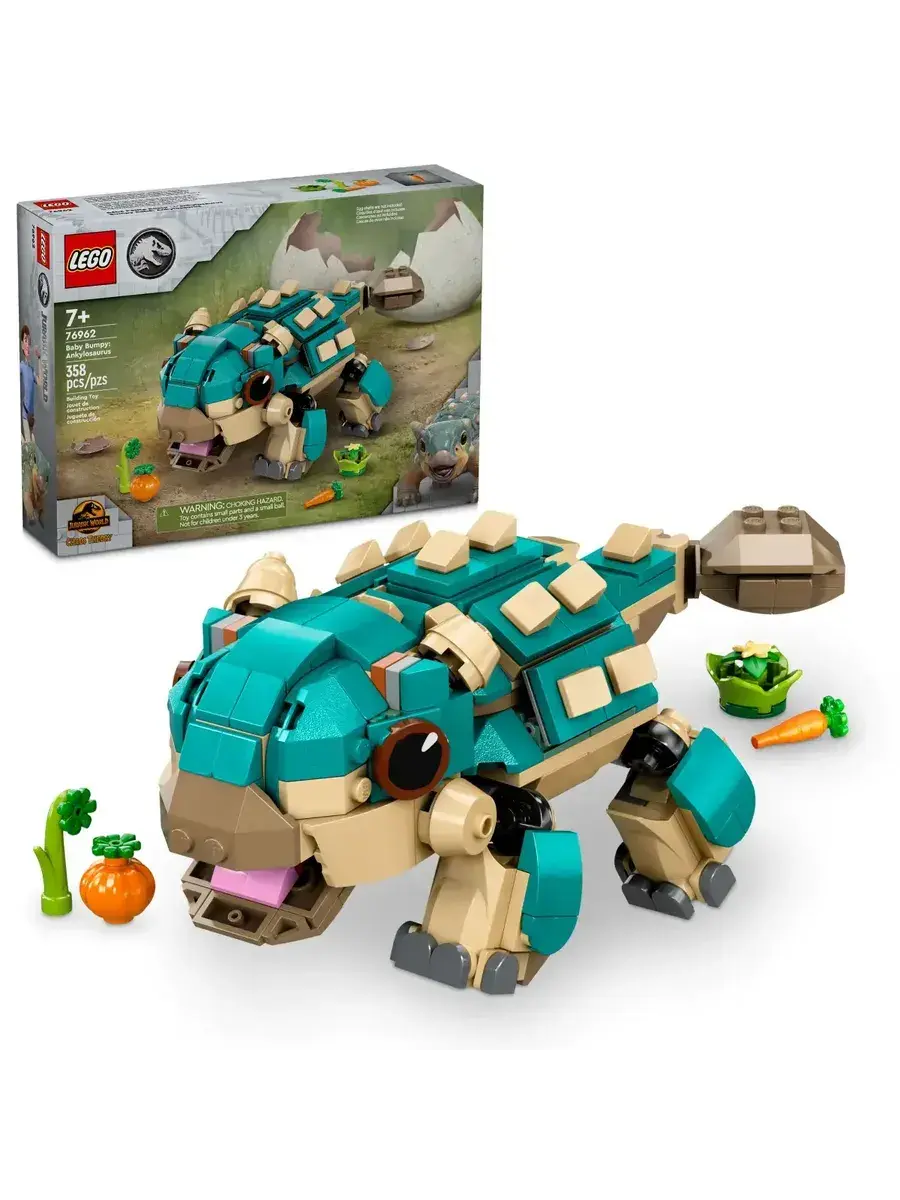 Конструктор LEGO Jurassic World 76962 "Малыш Бампи:анкилозавр" подарит юным палеонтологам увлекательное путешествие в мир динозавров. Этот набор из 358 деталей позволит собрать забавного антропоморфного анкилозавра, который станет верным другом для игр и приключений. Сборкой конструктора дети развивают мелкую моторику, воображение и творческие способности. Яркий голубой меланж конструктора LEGO Jurassic World станет отличным подарком для мальчика или девочки на день рождения, Новый год или просто так.Модель динозавра имеет открывающуюся пасть, шарнирный хвост, который виляет при движении головы из стороны в сторону, а также шарнирные ноги и несколько овощей. По окончании игры вы сможете поставить динозавра в разных динамичных позах на полку или стол.