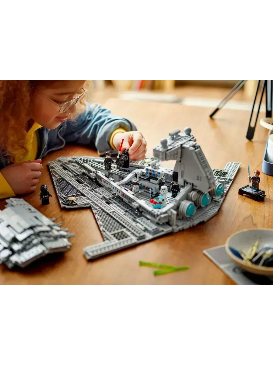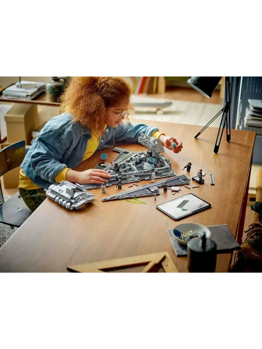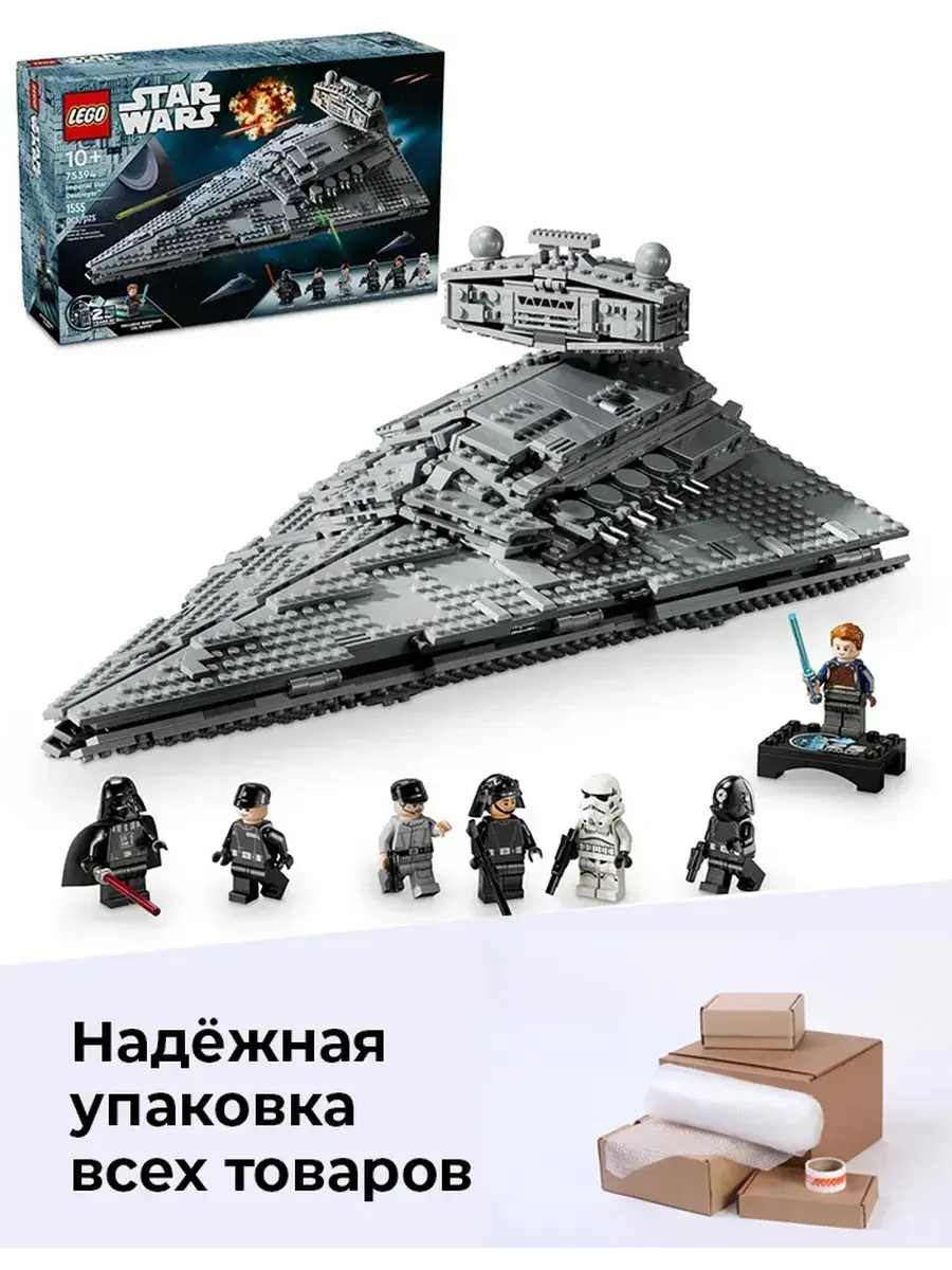 Конструктор LEGO Star Wars 75394 "Имперский звездный разрушитель" перенесет вас в мир эпических космических баталий. Этот впечатляющий набор, состоящий из 1555 элементов, позволит вам собрать легендарный корабль Империи, узнаваемый по своим внушительным размерам и фирменной форме. В комплекте вы найдете 7 минифигурок, включая культовых персонажей, таких как Дарт Вейдер и Император Палпатин, что добавит реализма и захватывающего характера игре. Соберите этот детальный конструктор и воссоздайте сцены из любимых фильмов или придумайте свои собственные космические приключения.Эта игрушка-конструктор Star Wars starship - отличный подарок на день рождения для мальчиков, девочек и фанатов в возрасте от 10 лет. Она оснащена скрытой раскладывающейся ручкой для переноски и 2 подпружиненными стрелками, а также съемной верхней панелью и раскладывающимися боковыми панелями для легкого доступа к детализированному интерьеру. Внутри находятся такие забавные детали, как мостик, командный пункт, комната отдыха, оружейная, панели управления и грузовой отсек с элементами термического детонатора. В комплект этой игрушечной машины из кирпича "Звездные войны" входят 7 минифигурок LEGO Star Wars, включая Дарта Вейдера, коммандера Праджи и специальную минифигурку Кэла Кестиса, посвященную 25-летию "Звездных войн", а также множество аксессуаров для воссоздания "Звездных войн: Приключения новой надежды". В приложении LEGO Builder вы найдете инструменты для просмотра с 3D-масштабированием и поворотом, которые помогут вам в творческом процессе.