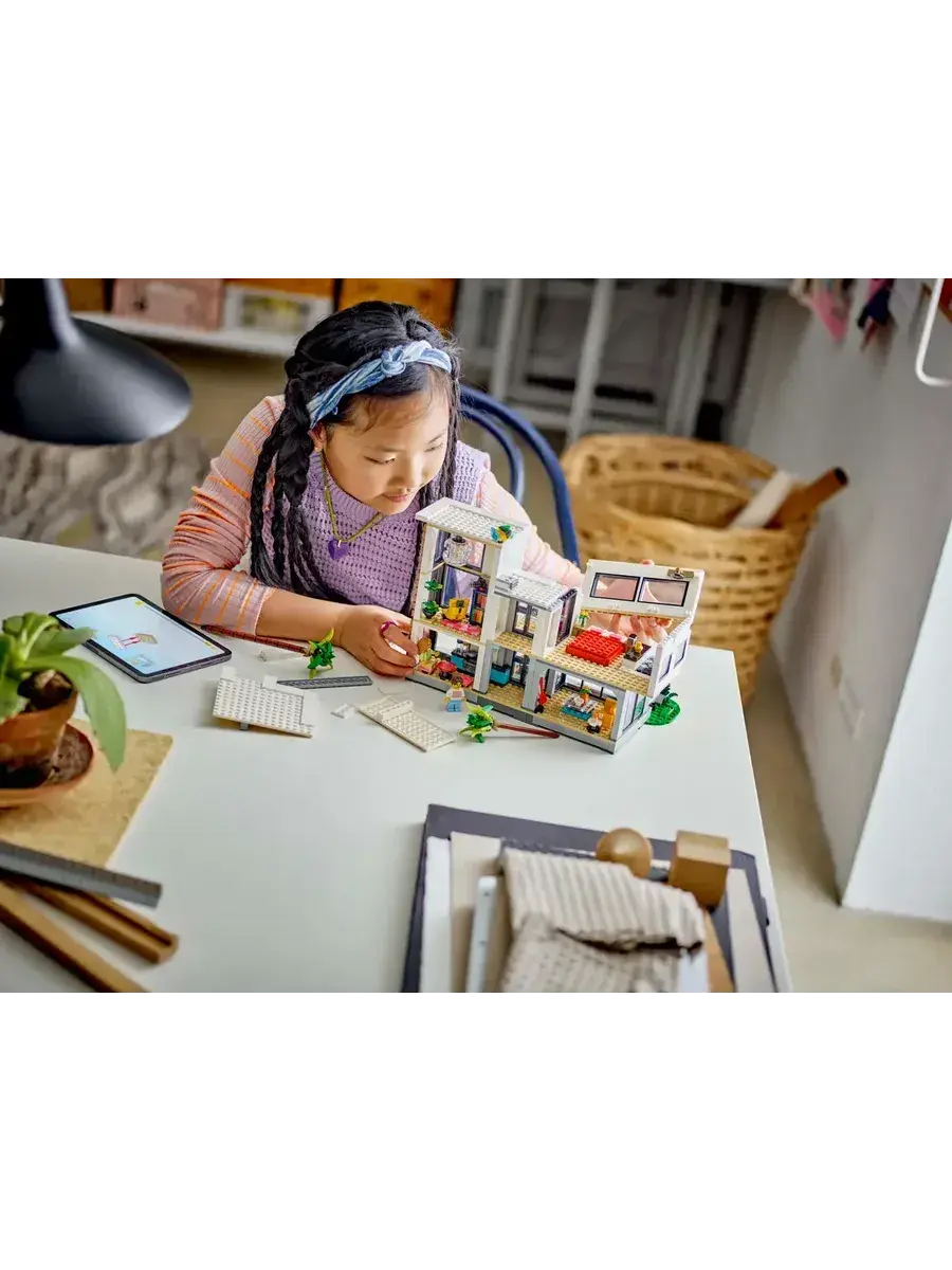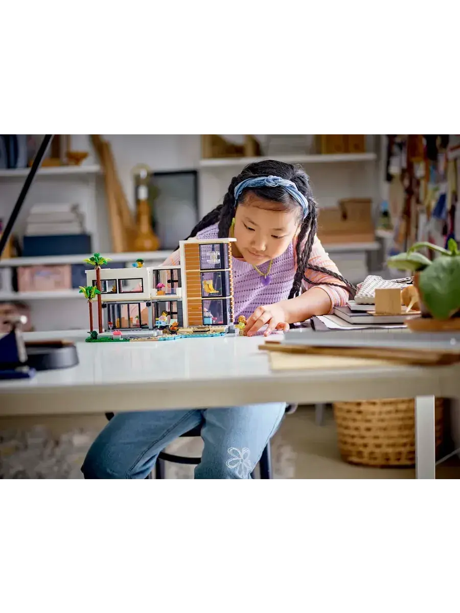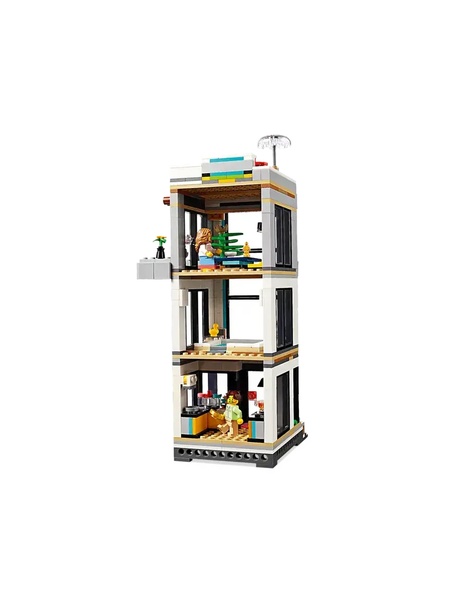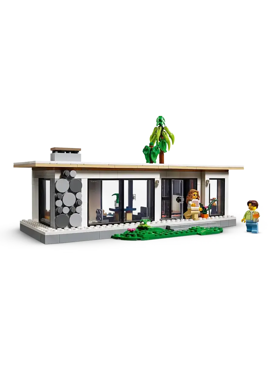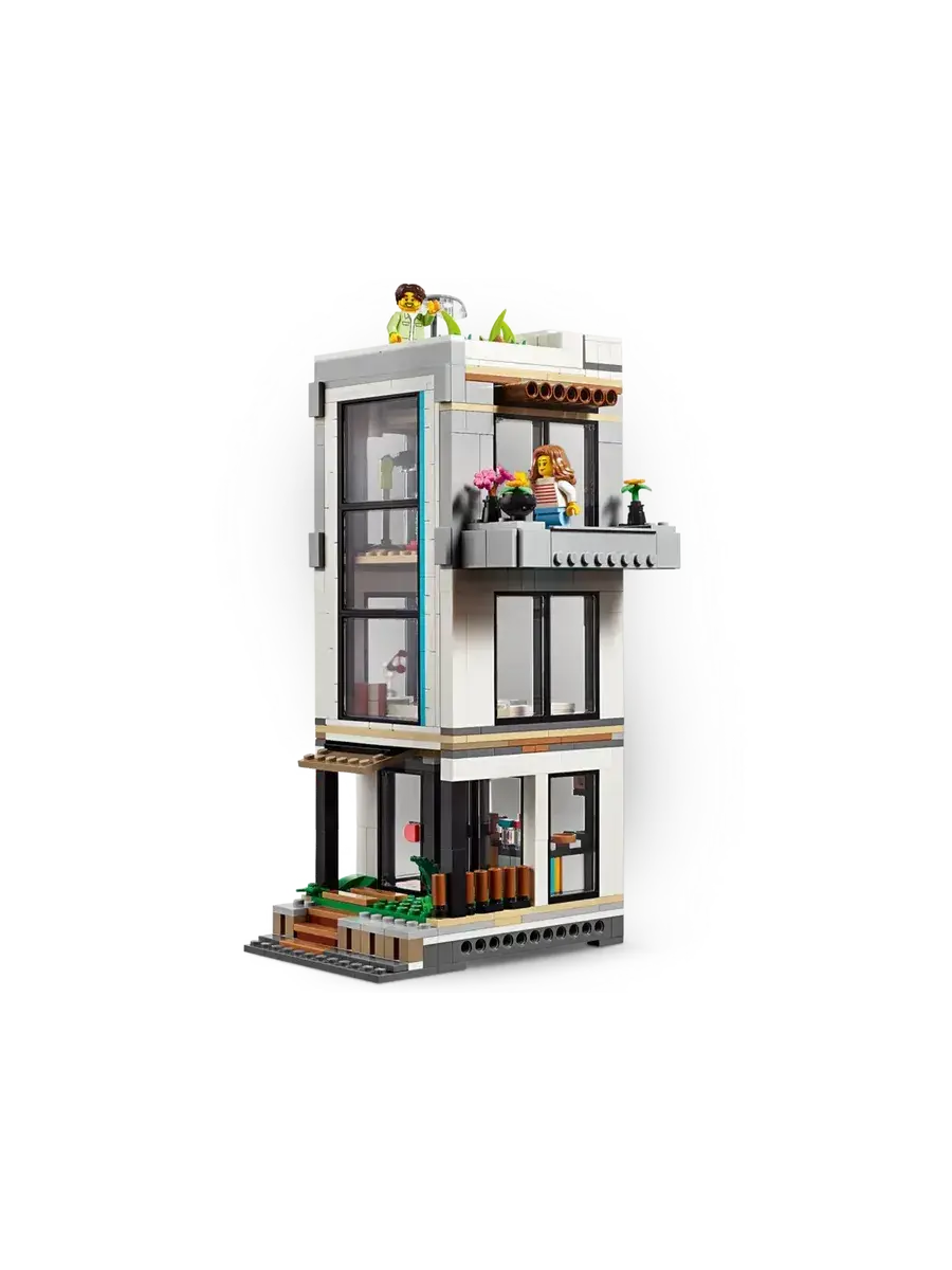 LEGO Creator 31153 Современный дом, 3в1 — это увлекательный конструктор, который позволит ребенку построить не один, а сразу три разных дома! В наборе 939 элементов, из которых можно собрать современный особняк, уютный домик на дереве или стильный многоквартирный дом. В комплекте также две фигурки, которые оживят игру и подарят множество возможностей для ролевых игр. Конструктор изготовлен из прочного ABS-пластика и совместим с другими наборами LEGO, что открывает безграничные возможности для творчества.Мальчики и девочки в возрасте от 9 лет могут собрать три разных игрушечных домика с помощью набора LEGO Creator «Современный дом» (31153). Роскошный двухэтажный пляжный домик с бассейном расположен в тени двух пальм и включает в себя кухню, гостиную, читальный зал, спальню, ванную комнату с душем, балкон и современную мебель. Этот конструктор предлагает мир захватывающих игровых возможностей.