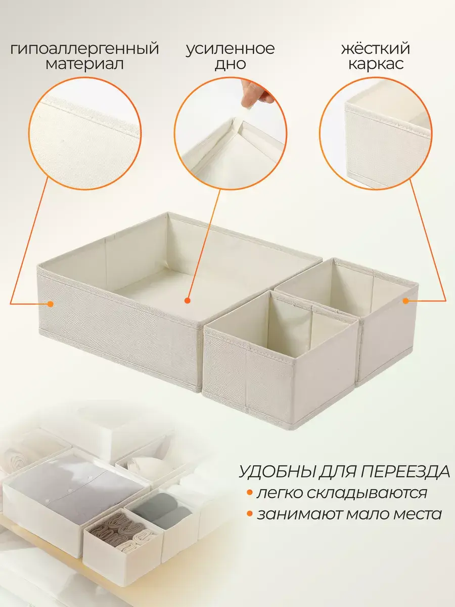 Откройте для себя универсальное решение для организации пространства, которое сочетает в себе элегантный дизайн, высочайшее качество и универсальность. Наш комплект коробок-органайзеров создан для тех, кто ценит порядок, уют и функциональность в каждой детали своего дома.