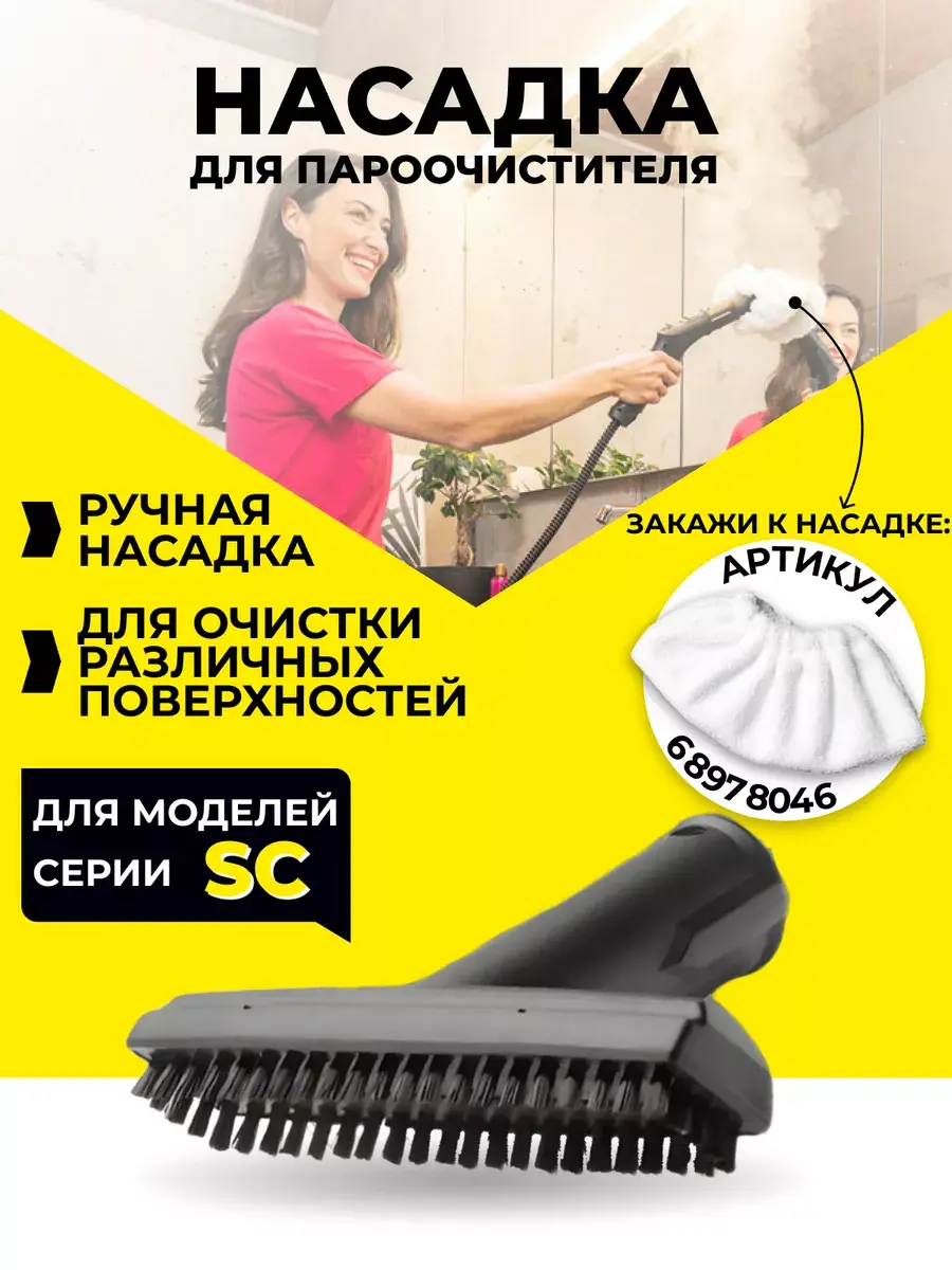Насадки для пароочистителя парогенератора Керхер представляют собой специализированные сменные аксессуары, созданные специально для конкретных задач по уборкеВсе насадки для моек и оборудования Керхер универсальны. Использование фирменных насадок и аксессуаров Керхер позволяет оптимизировать производительность моек и другой уборочной техники, а также расширить ее функциональные возможности. Вы сможете быстро и легко сделать уборку своего дома с помощью правильно подобранных аксессуаров к бытовым пылесосам Керхер. Не имеет значения, что именно вы хотите очистить от пыли – мягкий диван, паркетный пол или компьютерную клавиатуру, благодаря широкому ассортименту наших изделий вы обязательно подберете нужный вариант под решение ваших задач.Области применения:1. Уборка загрязнений с гладких напольных покрытий – ламината, паркета, линолеума, паркетной доски и других.2. Очистка (в том числе влажная) обивки мягкой мебели и сидений автомобиля.3. Уборка пыли со сложных поверхностей и труднодоступных мест.4. Тщательная уборка деликатных напольных покрытий.5. Сбор грязи и пыли из ворса ковров и мебельной обивки.6. Очистка труднодоступных мест – щелей, узких промежутков, углов.