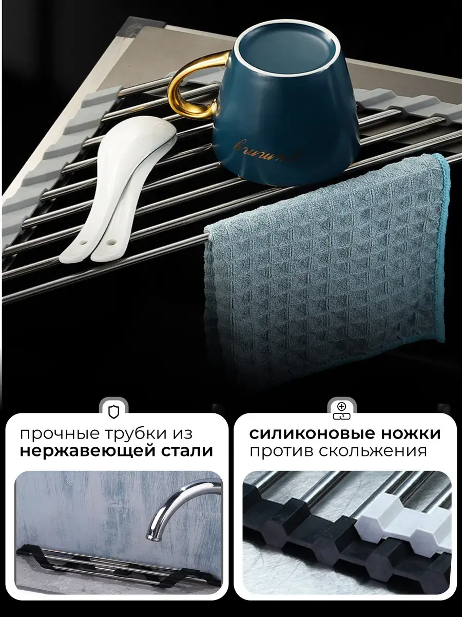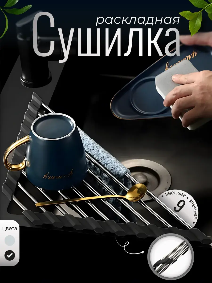 Подставка для посуды компактно складывается и удобно хранится.