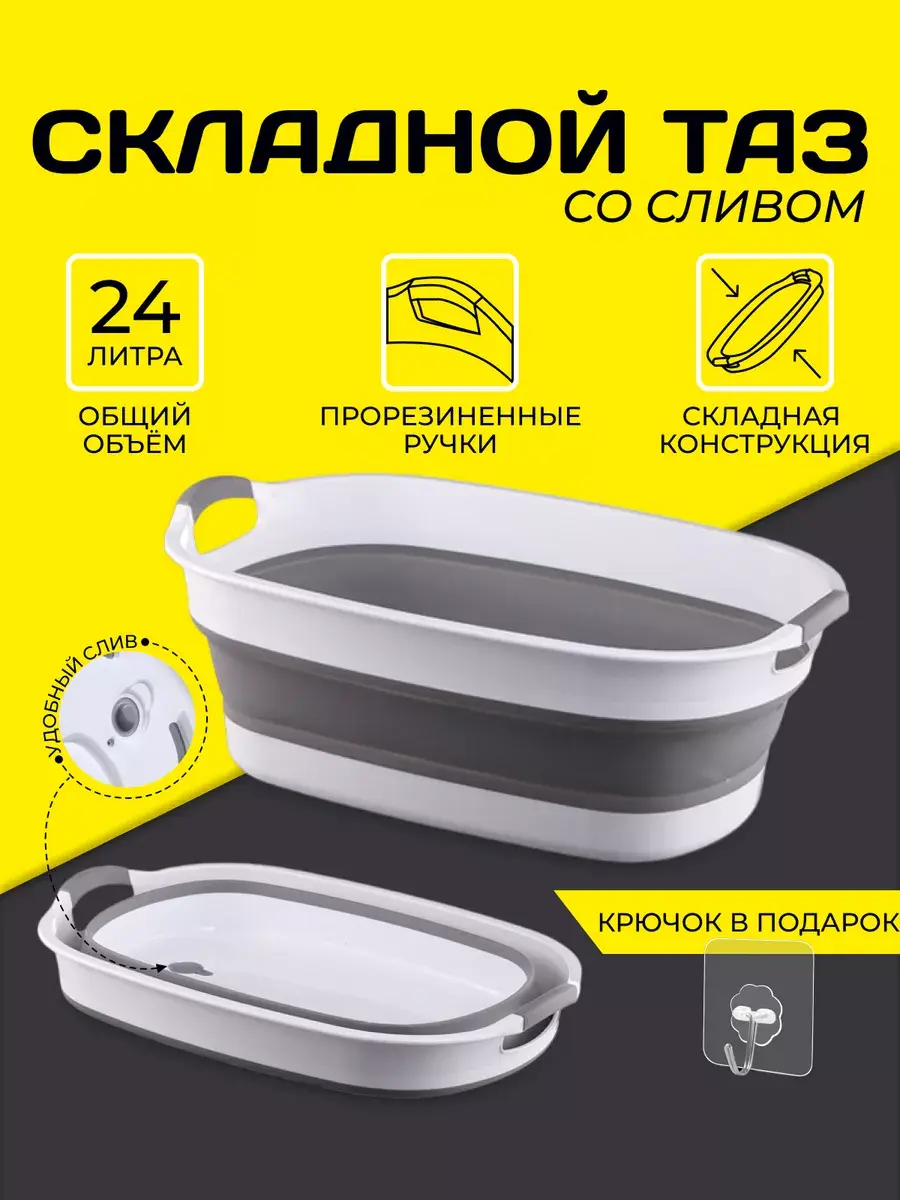 Тазик раскладываться до 24 литров делает его идеальным для более крупных задач, при этом оставаясь компактным для хранения. Сочетает в себе важные функции: удобство и функциональность.