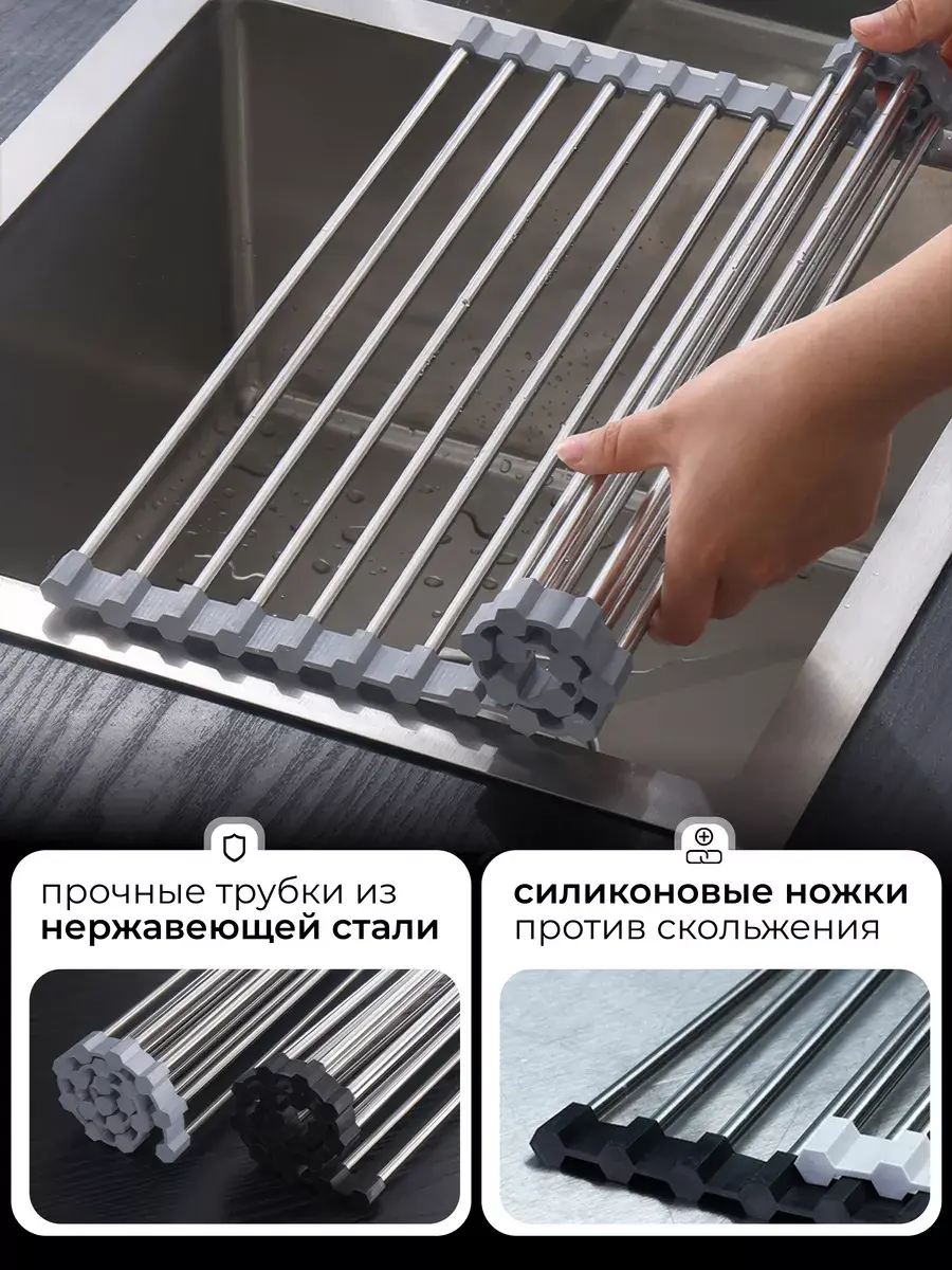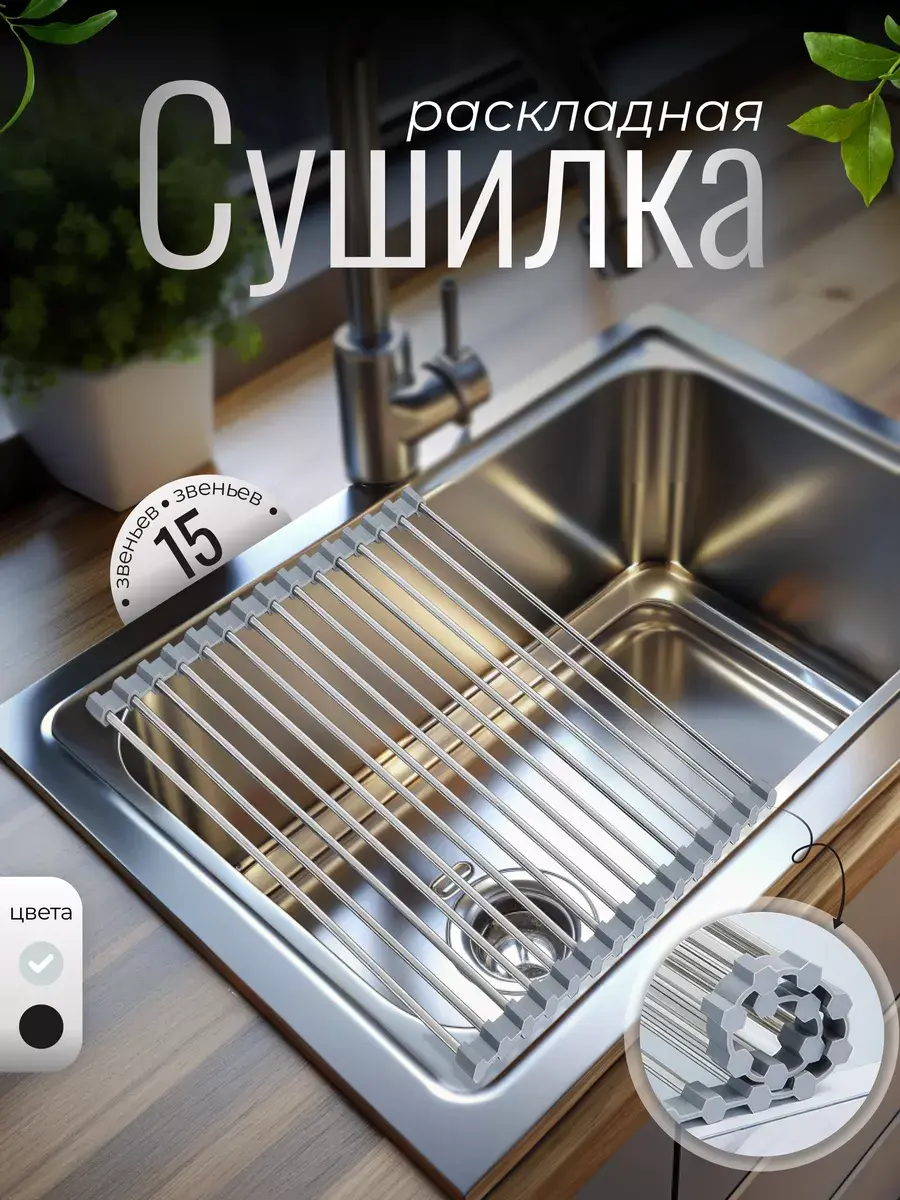 Сушилка на раковину из 15 звеньев актуальная вещь для каждой хозяйки. Металлическую решетку для раковины можно использовать для сушки посуды, овощей, фруктов, разморозки продуктов, остывания выпечки и как подставку под горячее.